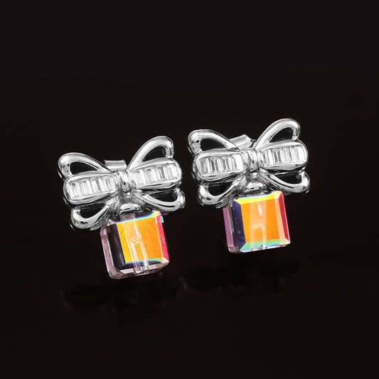 Bow tie Cube Earring 925 Sterling Silver